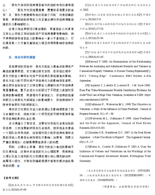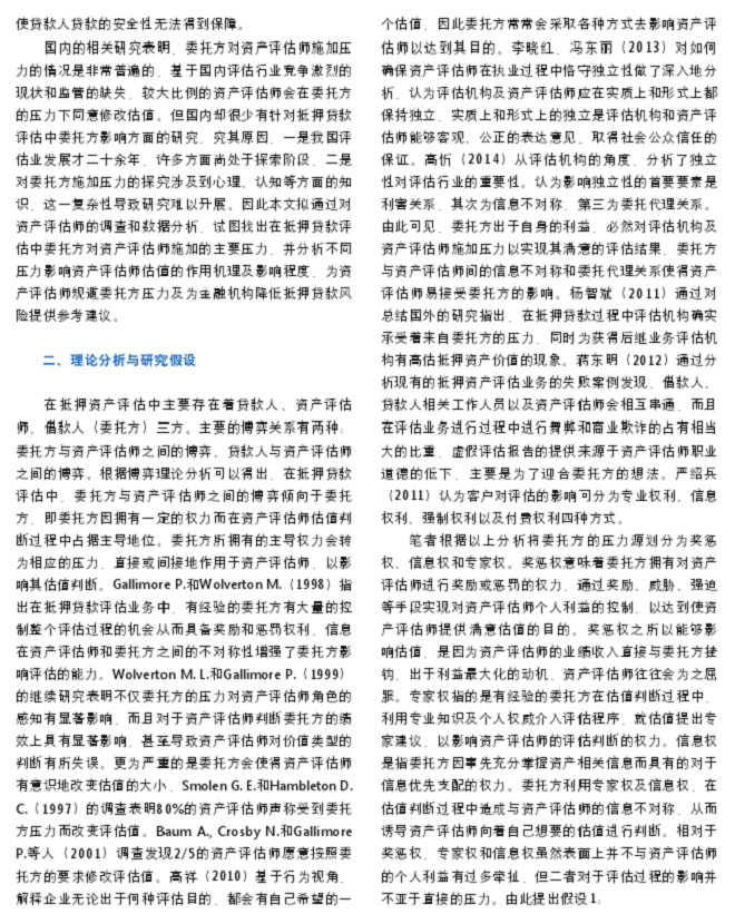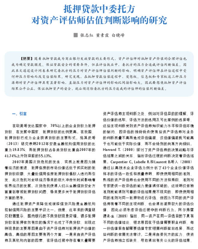 抵押貸款中委托方對資產(chǎn)評估師估值判斷影響的研究