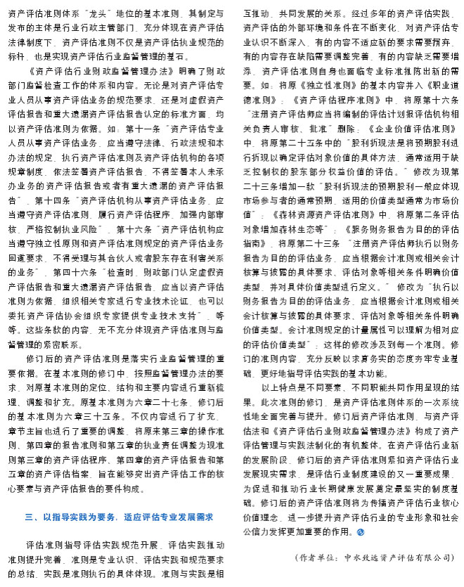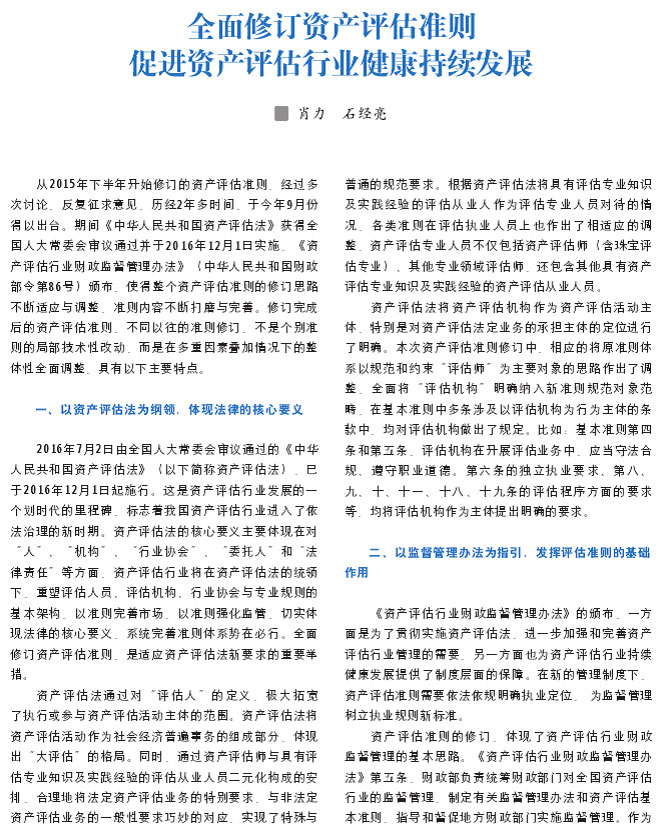 全面修訂資產評估準則 促進資產評估行業健康持續發展