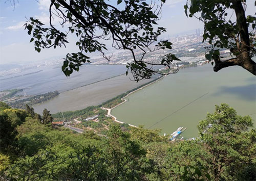 從龍門索道下站坐到龍門索道上站,全程眺望整個滇池,太刺激了。在索道上,我們可以盡情的欣賞遼闊的滇池,感受徐徐微風拂面的舒適感。